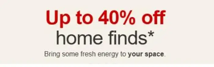 Limited time only! Shop in store and get up to 40% off on home finds.